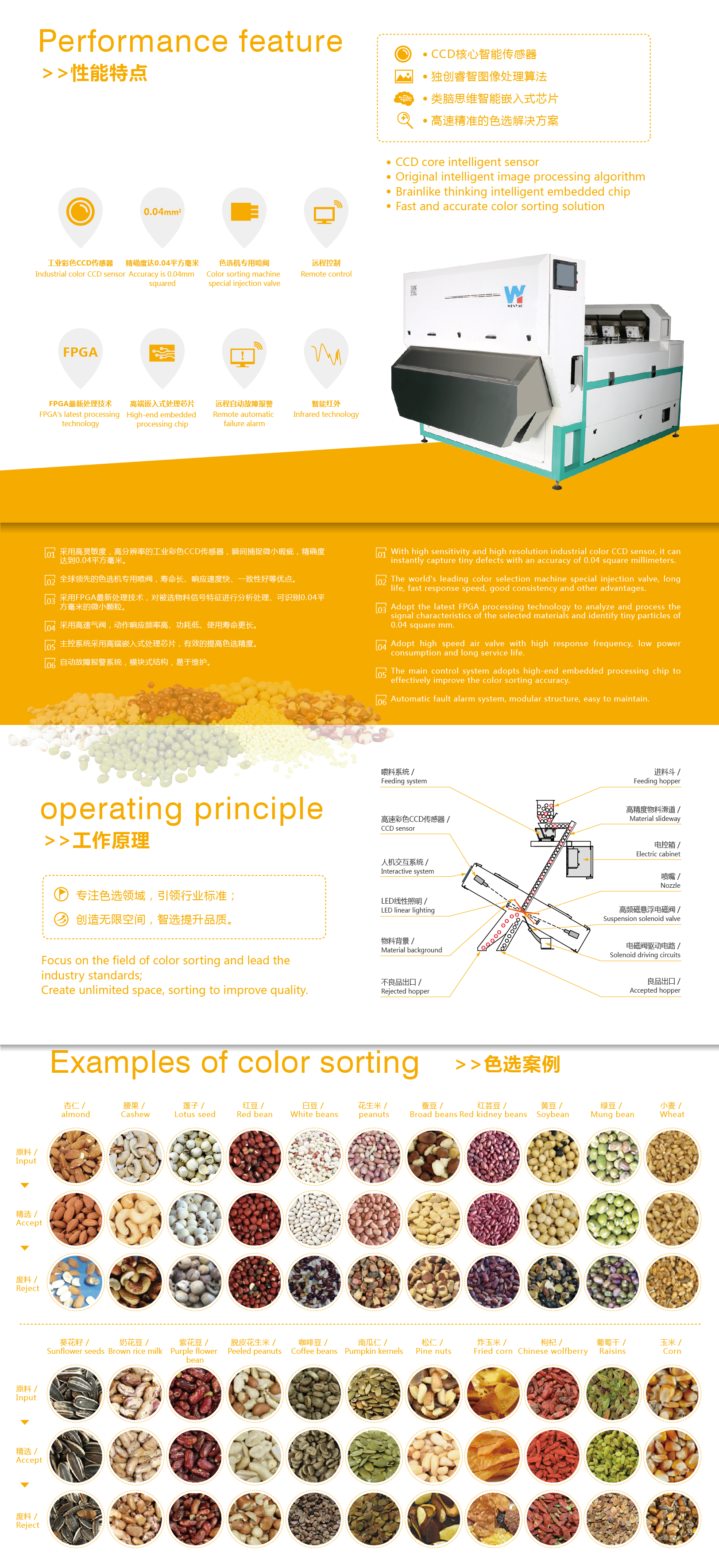The Multifunction Color Sorter product is equipped with advanced technical features to ensure smooth and efficient operation. Our technical support and services team is available to assist with any issues you may encounter with the product, including: